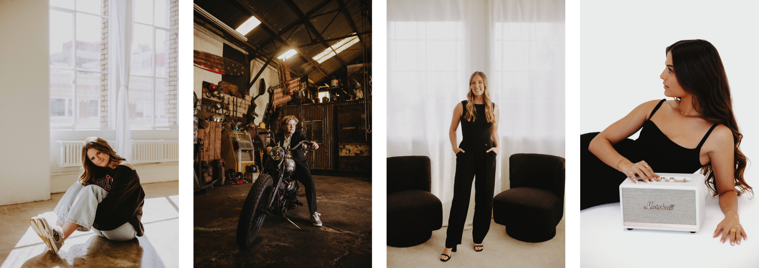 If you go into your photoshoot knowing you want to wear something black, you’ll want to keep that in mind when selecting your locations. Black can be a bold choice in certain environments, which is also why it can work so well. Think: indoor studios and downtown locations with brick and concrete. With an edgy outfit, you want a location with a degree of edge to it as well.